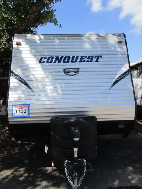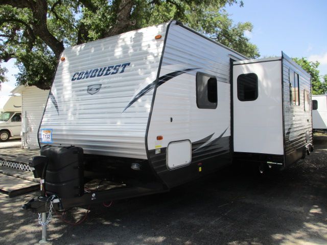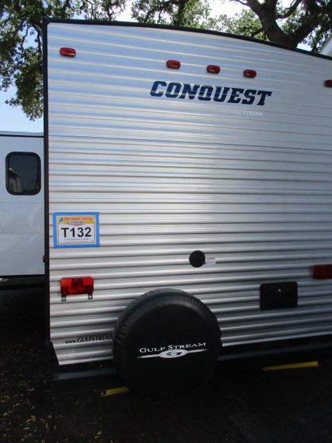 This Brand New 2017 Gulfstream Conquest Supreme has an Electric Tongue Jack, Tinted Windows, Electric Awning, Electric Stabilizers, 1 Slide-out, 1 Ducted Roof A/C, Two Door Refrigerator, Main Awning, CD Radio, Outside Speakers, DVD Player, Outside Shower, Microwave, 3 Burner Range, Oven. Go Camping in Style with This New Conquest Bunk House, Two Door Entry Plan.