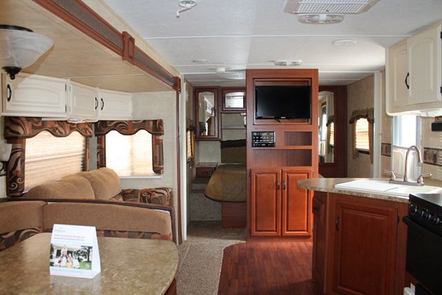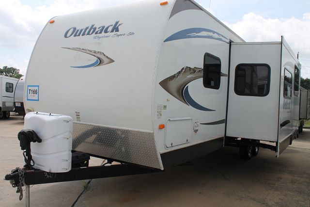 Bunkhouse floor plan ! This 2011 Outback By Keystone has an Electric Tongue Jack for ease in hitching and unhitching, Options include....2 Slide-outs, 1 Roof A/C, Double Door Refrigerator, Main Awning, CD Radio, 2 TVs, DVD Player, Outside Shower, Microwave, 3 Burner Range and Oven. Also has an Outside Grill and Sink for great family meals.