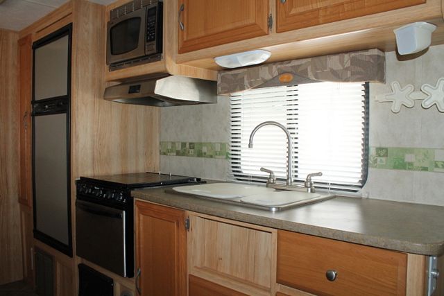 This 2008 Dutchmen Aerolite sleeps up to four and has a private rear bathroom and is perfect for last minute trips. Options include....Electric Tongue Jack, 1 Roof A/C, Double Door Refrigerator, Main Awning, CD Radio, Outside Speakers, DVD Player, Microwave, 3 Burner Range and Oven. Get out and enjoy the great outdoors.
