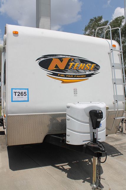 Toyhauler with Queen bunks This 2010 Dutchmen Ntense includes an Electric Tongue Jack and so many more fabulous features including....Onan Gas Generator, 1 Ducted Roof A/C, Double Door Refrigerator, Main Awning, CD Radio, Outside Speakers, DVD Player, Microwave, 3 Burner Range and Oven. Wide ramp door at 95"and 97"wall to wall and a cargo space of 14'1" or 16'to the sink. Height is 6'10". So load the toys and hit some dirt.