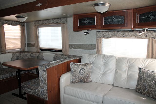 This 2013 Signature Ultra Lite Forest River/Rockwood has an Electric Tongue Jack and plenty of sleeping space for everyone. It's Comforts include....2 Slide-outs, 2 Ducted Roof A/Cs, Double Door Refrigerator, Main and Outdoor Kitchen Awnings, CD Radio, Heated Tanks, 2 TVs, DVD Player, Outdoor Kitchen with Sink/Refrigerator/Microwave and Two Burner Stove Top, Outside Shower, 3 Burner Range and Oven. Has the Diamond Platinum Package which includes Outside Speakers with Surround Sound, Outside TV Attachment, Double Pane Windows, Detachable Grill with Cutting Board and More. Spend quailty time with your family in the great outdoors. Go CAMPing!