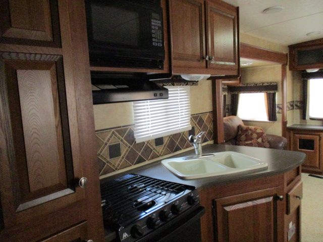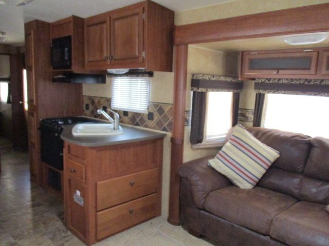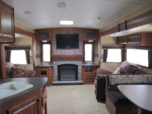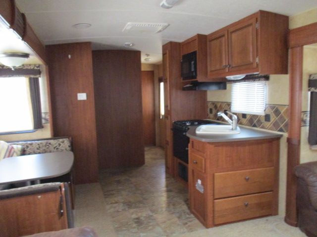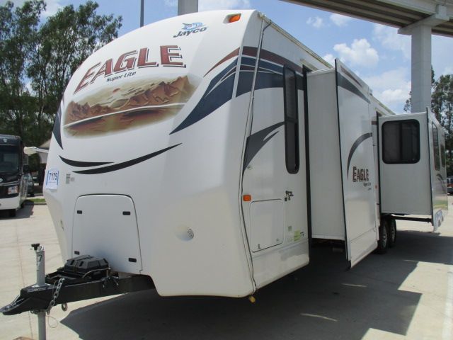 Perfect for the the couple on the go ! This Very Clean 2012 Eagle Super Lite By Jayco has a wonderful living space with Flat Screen TV and Fireplace. Comforts include....3 Slide-outs, 2 Roof A/Cs, Double Door Refrigerator, Main Awning, CD Radio, Outside Shower and Speakers, 2 TVs, DVD Player, Microwave, 3 Burner Range and Oven. Enjoy your freetime in this Comfortable Jayco.