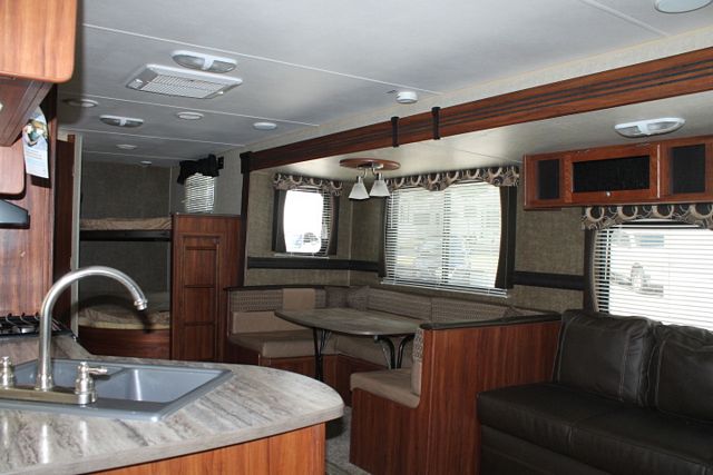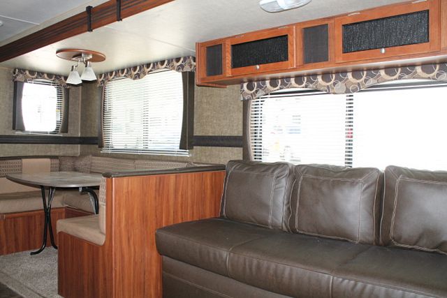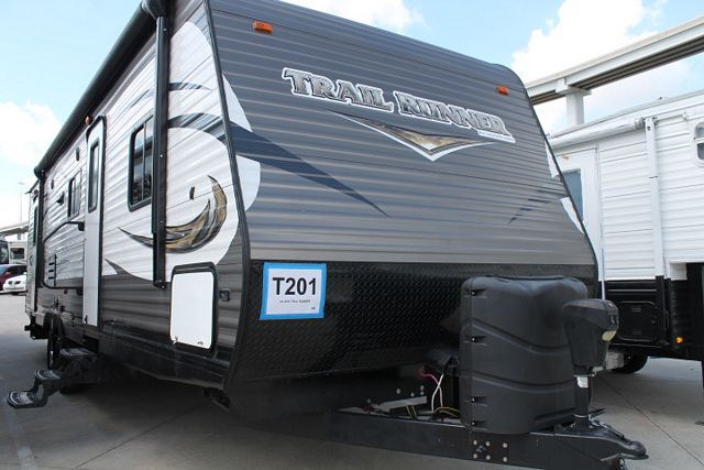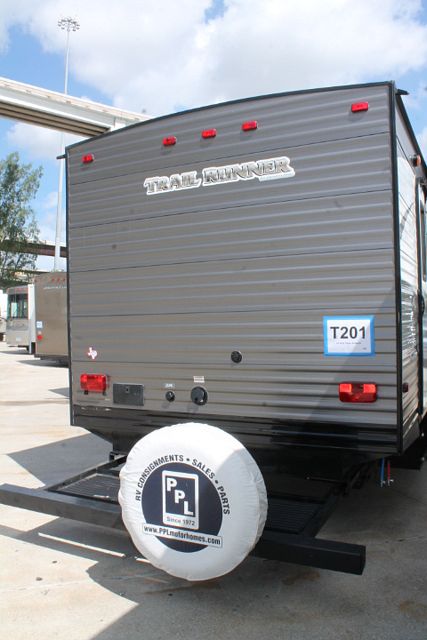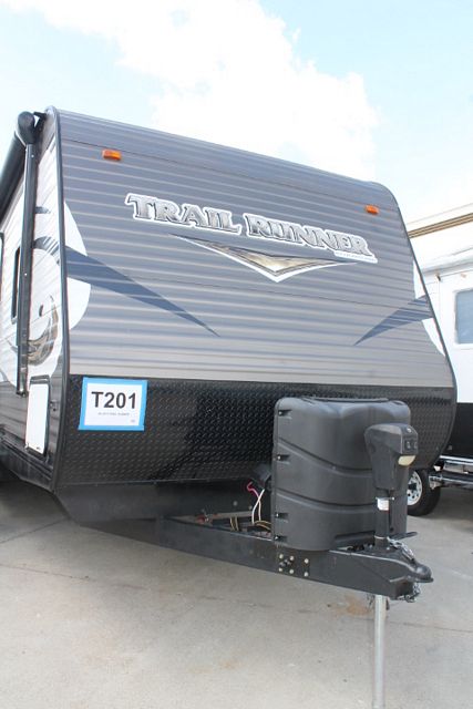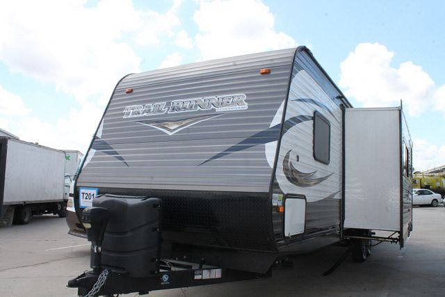 This Nearly New 2015 Heartland Trail Runner with double size bunks has sleeping accommodations for up to 10. It's Comforts include.... has an Electric Tongue Jack and Electric Stabilizers for Quick and Convenient set-ups/break downs. 1 Slide-out, 1 Ducted Roof A/C, Double Door Refrigerator, Main Awning, CD Radio, Outside Shower and Speakers, DVD Player, Microwave, 3 Burner Range and Oven. Also has a Rear Cargo Rack for extra storage. Stop by and See It TODAY!