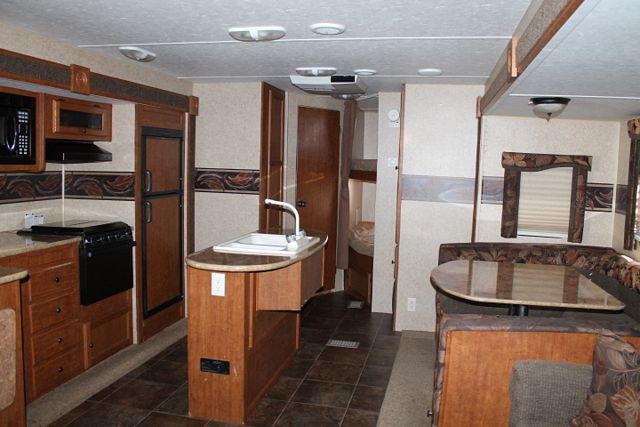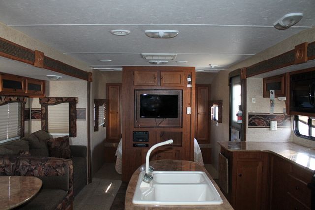 This 2013 Aljo Joey Select has plenty of sleeping space and all the comforts. Options include....2 Slide-outs, 2 Roof A/Cs, Double Door Refrigerator, Main Awning, CD Radio, Outside Shower and Speakers, TV, DVD Player, Microwave, 3 Burner Range and Oven. Also has an Electric Tongue Jack for in hitching and unhitching Plus This wonderful Outdoor Kitchen for some great family cooking.