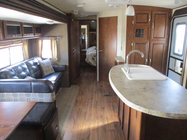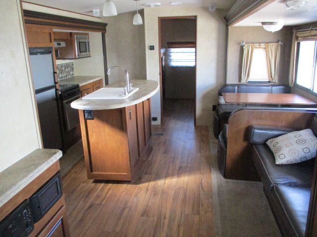 This 2016 Vibe has an Electric Tongue Jack, 3 Slide-outs, 2 Ducted Roof A/Cs, Double Door Refrigerator, Main Awning, CD Radio, Outside Speakers, Outdoor Kitchen, Microwave, 3 Burner Range, Oven and very popular bunkhouse floorplan. Great for thos vacation getaways with your kids and grandkids. Let's go RVing!