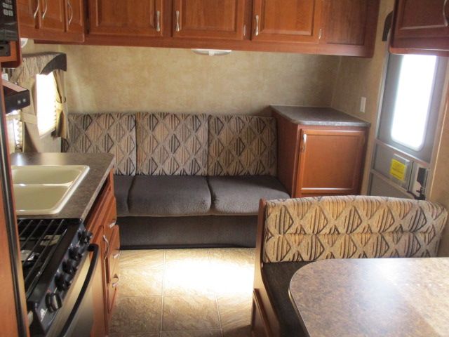 This 2011 Jayco Jay Flight has a 1 Ducted Roof A/C, Double Door Refrigerator, Main Awning, CD Radio, Outside Speakers, TV, Outside Shower, Microwave, 3 Burner Range, Oven and double bed on lower bunk. Great eficient floorplan. Let's go RVing!