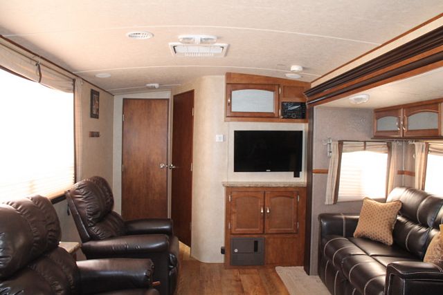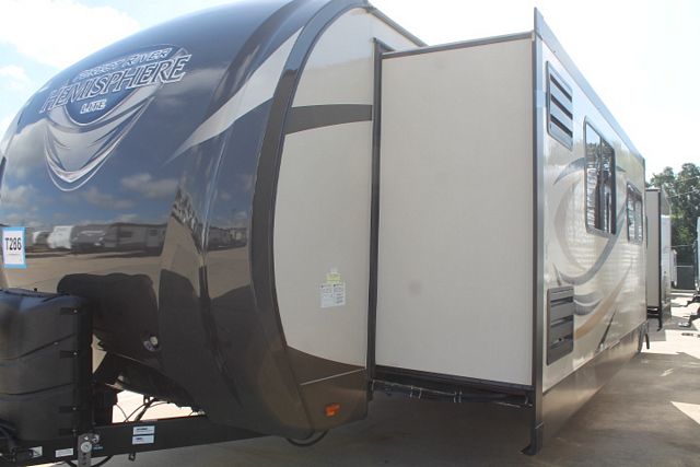 Wow !This Nearly New 2015 Hemisphere Lite By Forest River has a very popular floor plan with an up front Kitchen. It's Features include.... An Electric Tongue Jack and Stabilziers. 2 Slide-outs, 1 Roof A/C, Double Door Refrigerator, Main Awning, Outside Shower and Speakers, 2 TVs, DVD Player, Microwave, 3 Burner Range and Oven. Also Includes a Central Vacuum System and Outdoor Kitchen for great family meals. Nice Travel Trailer with plenty of Storage and Comforts. Come on By and take a LOOK!