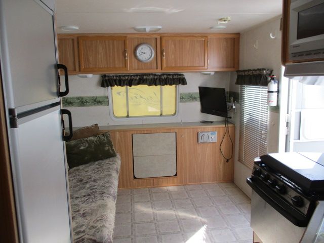 This 2004 Layton has an Electric Tongue Jack, 1 Ducted Roof A/C, Double Door Elec/Gas Refrigerator, Main Awning, CD Radio, TV, Outside Shower, Microwave, 3 Burner Range, Oven and 1/2 ton towable. Perfect for those weekend getaways and vacation outings. Let's go RVing!