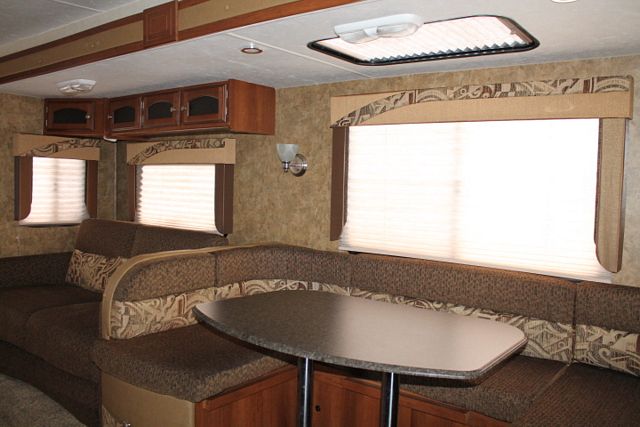 This 2014 Freedom Express Liberty is a Comfortable Way To Travel. Options include....Electric Tongue Jack, 3 Slide-outs, 1 Roof A/C, Double Door Refrigerator, Main Awning, CD Radio, Outside Speakers, TV, DVD Player, Outside Shower, Microwave, 3 Burner Range and Oven. A Sharp Looking Trailer with a Spacious Floorplan.