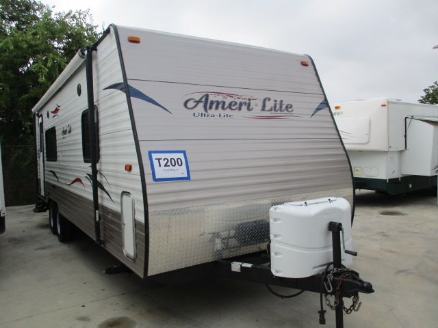 This 2014 Gulfstream Ameri-Lite has a 1 Slide-out, 1 Ducted Roof A/C, Double Door Refrigerator, Main Awning, CD Radio, Outside Speakers, Outside Shower, Microwave, 3 Burner Range, Oven and sit down bar space at rear of travel trailer. Great travel trailer for weekends or long vacations. Let's go RVing!