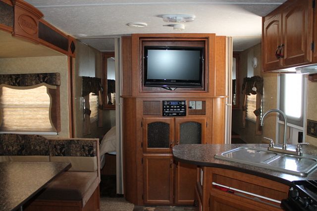 This Well Maintained 2012 Primetime Tracer has plenty of wonderful Features that include....Trail Air Suspension, Electric Tongue Jack, 1 Slide-out, 1 Ducted Roof A/C, Double Door Refrigerator, Main Awning, CD Radio, Outside Speakers, TV, DVD Player, Outside Shower, Microwave, 3 Burner Range and Oven. Includes A Complete Outdoor Kitchen with grill for some great outdoor cooking.
