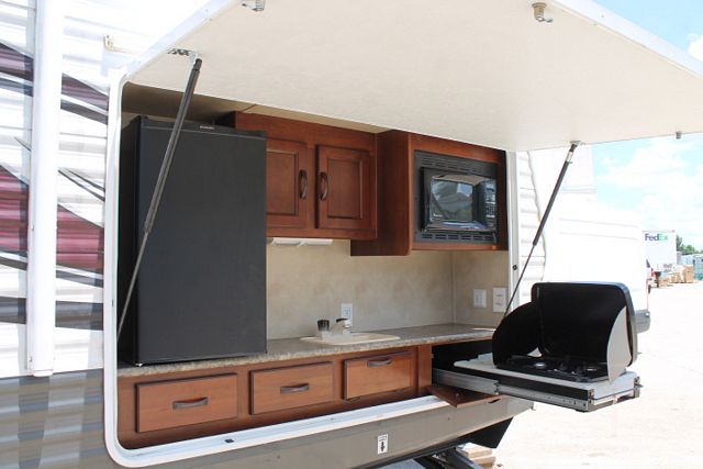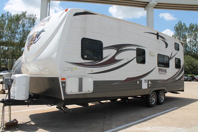 This Toyhauler has an 11' Cargo Area, 2 Queen Beds and 2 Double Beds. This 2013 Puma is loaded with great features that include....Electric Tongue Jack, 1 Ducted Roof A/C, Double Door Refrigerator, Main Awning, CD Radio, Outside Speakers, DVD Player, Microwave, 3 Burner Range and Oven. Also has an Outdoor Kitchen for some wonderful outside cooking. Stop by and SEE it TODAY!