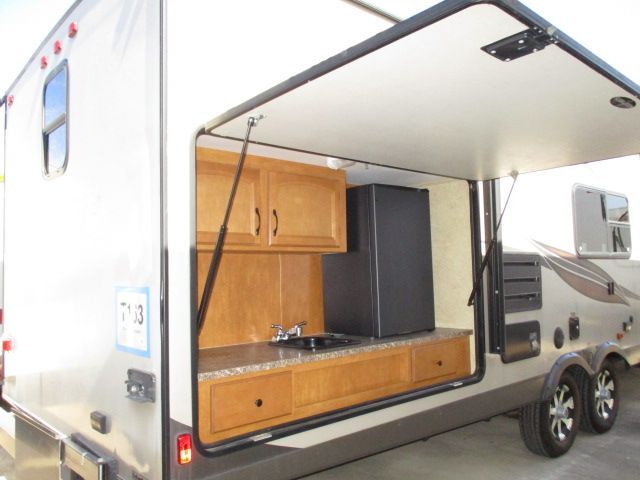Comfortable Layout with Rear Bathroom that has Plenty of Privacy ! This 2013 Evergreen Ever-Lite Select has an Electric Tongue Jack for Ease in Hitching and Unhitching, Comforts include....1 Slide-out, 1 Ducted Roof A/C, Double Door Refrigerator, Power Main Awning, CD Radio, Outside Shower and Speakers, DVD Player, Microwave/Convection, 3 Burner Range and Oven. Sleeps up to 6 and also includes an Outdoor Kitchen with Grill and Refrigerator for Great Family Meals.