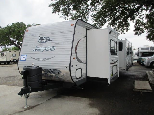 This 2015 Nearly New Jayco Jay Flight has plenty of comforts for week get aways. Features include.... Electric Tongue Jack, 2 Slide-outs, 1 Ducted Roof A/C, 1 Door Refrigerator, Main Awning, CD Radio, Outside Speakers, TV, DVD Player, Outside Shower, Microwave, 3 Burner Range and Oven. Hit the highway with this Jayco in tow.