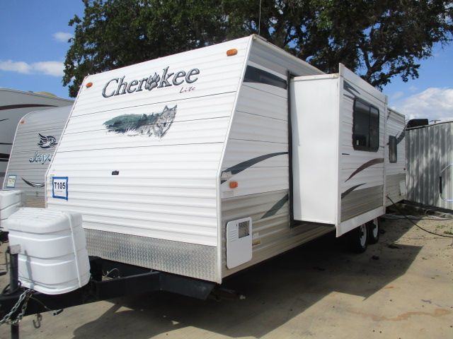 This 2008 Cherokee By Forest River has a 1 Slide-out, 1 Ducted Roof A/C, Double Door Refrigerator, Main Awning, CD Radio, TV, Outside Shower, Microwave, 3 Burner Range, Oven, 2 Door Open Plan.., Newer Tires as of March 2016,