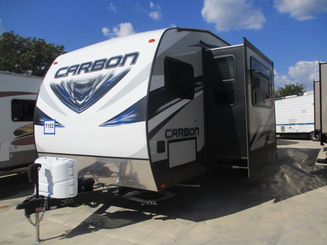 This 2016 Carbon has an Electric Tongue Jack, 1 Slide-out, 1 Ducted Roof A/C, Double Door Gas Refrigerator, Electric Main Awning, CD Radio, Outside Speakers, TV, DVD Player, Outside Shower, Microwave, 3 Burner Range, Tinted Galss, Drop Door Rear Toy Hauler Entrance, 2 Door Floor Plan, Gas Station... and Generator! Hurry .. Won"t Last Long.