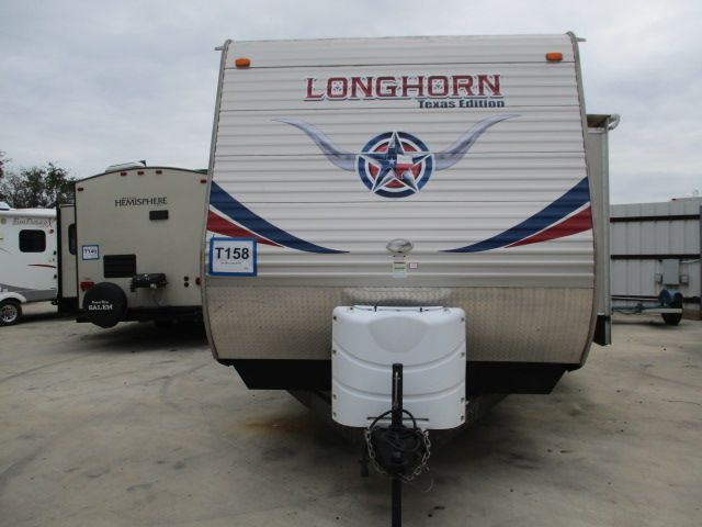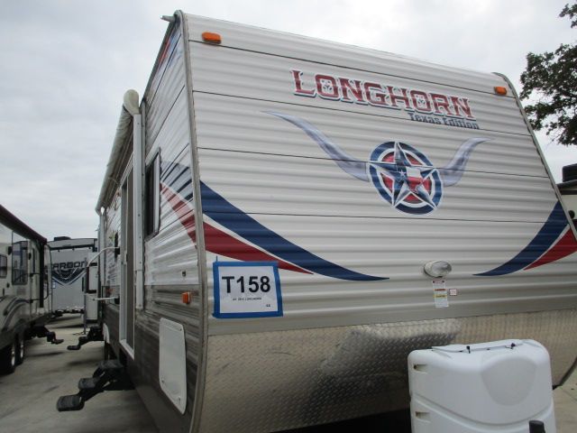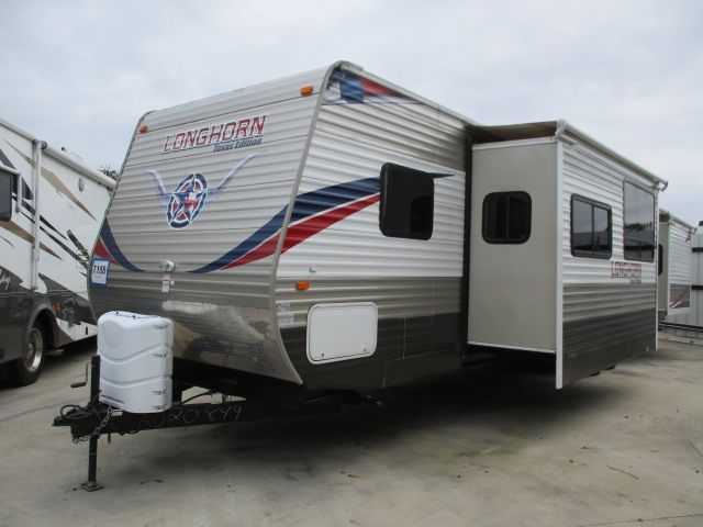 This 2013 Longhorn has 2 BR's, 2 Door Plan, 2 Slide-outs, 2 Ducted Roof A/Cs, Double Door House Refrigerator, Electric Main Awning, Slide Awnings, 2 Piece Washer/Dryer, CD Radio, Outside Speakers, DVD Player, Outside Shower, Microwave, 4 Burner House Range, Oven, Exterior Propane Connection for BBQ Appliance, Nitro Filled Tires, A Complete House on Wheels.