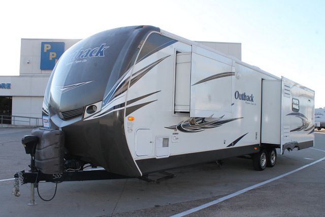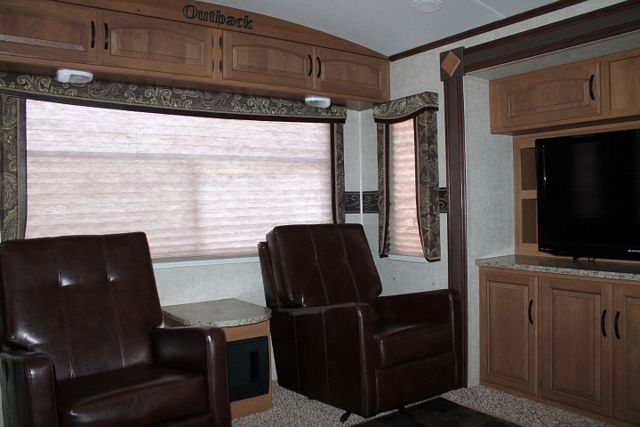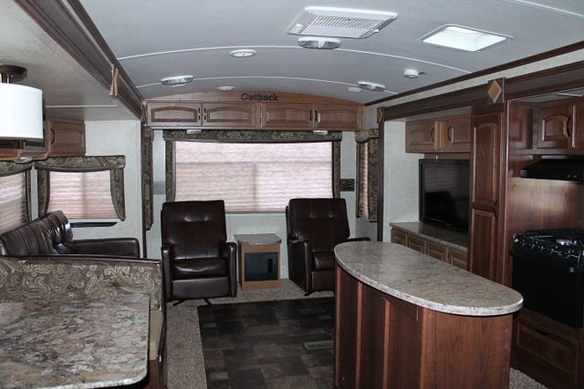 Wonderful floor plan. This 2013 Outback By Keystone has a roomy kitchen layout thats perfect for the cooking enthusiast with plenty of counter space. Amenities include.... Electric Tongue Jack, 3 Slide-outs, 1 Roof A/C, Double Door Refrigerator, Main Awning, CD Radio, Outside Shower and Speakers, 2 TVs, Microwave, 3 Burner Range and Oven. It also has lot's of storage space. Enjoy all of your adventures with the comforts of home. Get out and Go CAMPing NOW!