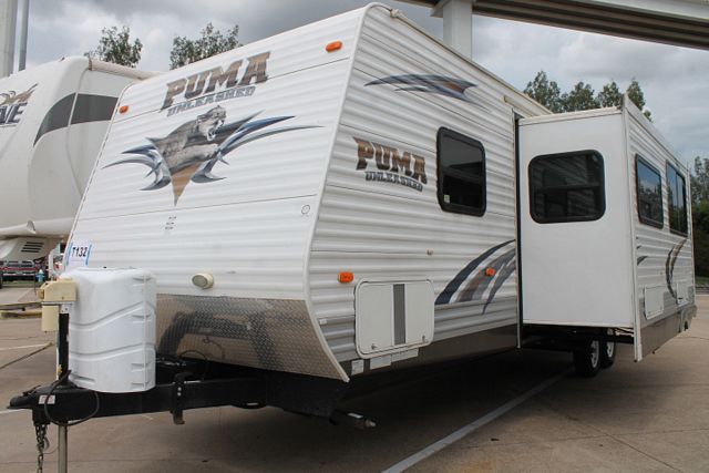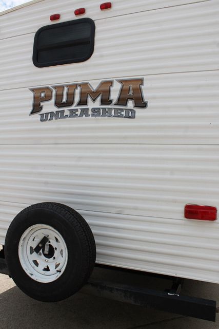 This 2011 Puma Unleashed By Palomino has a nice layout with fold-up queen beds in cargo area for added sleeping accomodations. Options in clude....Electric Tongue Jack, 1 Slide-out, 1 Ducted Roof A/C, Double Door Refrigerator, Main Awning, CD Radio, Outside Shower and Speakers, TV, Microwave, 3 Burner Range and Oven. Spend quailty time with your family in the great outdoors and (with your Toys) ! OH BOY!