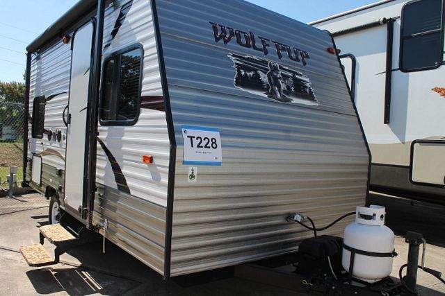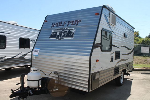 Light weight, 1/2 ton towable. This 2014 Wolf Pup sleeps up to 4 with it's single bunk floor plan. Options include....1 Roof A/C, Single Door Refrigerator, Main Awning, Outside Speakers, TV, Microwave and 2 Burner Range. Great for last minute trips.