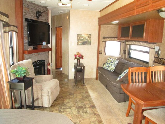 This Nice 2012 Jayflight Has 3 Slide-Outs, Options Include... 2 Roof A/Cs, Residental Double Door Refrigerator, In-Fridge Ice Maker, Fireplace, Ceiling Fan, Sound Bar, Main Awning, CD Radio, Outside Speakers, TV, DVD Player, Outside Shower, Microwave, 4 Burner Range, And Oven. Experience The Pleasures Of Home While Camping In This Jayflight, Plenty Of Room And It Has A Great Floorplan. Get Ready To Enjoy All That Traveling Has To Offer, Let's Hit The Road!!