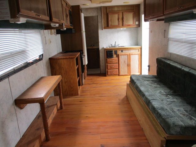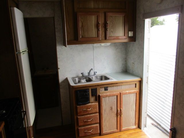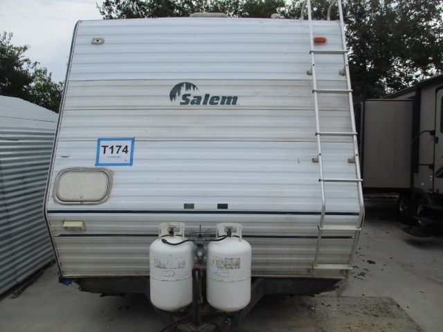 This 1999 Salem has a 1 Ducted Roof A/C, Double Door Electric Refrigerator, Cassette Radio, Outside Shower, Microwave, 3 Burner Range, Oven and recently replaced roof. Perfect toyhauler to haul all your ATVs to the deer lease or ranch. Let's go RVing!