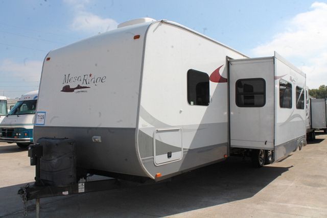 This 2013 Mesa Ridge has a family friendly floor plan with all the comforts. Options include....Electric Tongue Jack, 2 Slide-outs, 2 Roof A/C, Double Door Refrigerator, Main Awning, Outside Shower and Speakers, TV, DVD Player, Microwave, 3 Burner Range and Oven. Bonus: Includes an Outdoor Kitchen for great family meals.