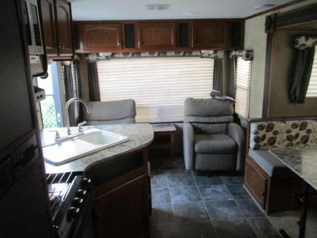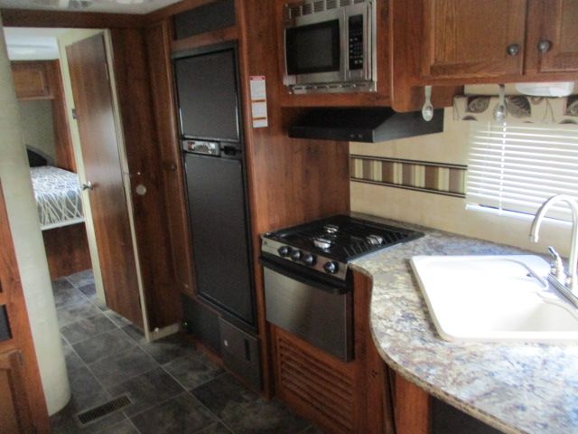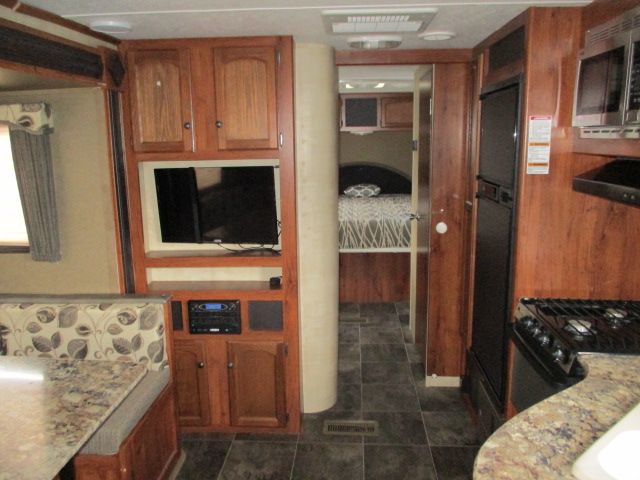This 2015 Hide Out has an Electric Tongue Jack, 1 Slide-out, 1 Ducted Roof A/C, 2 Dr G/E Refrigerator, Main Awning, Central Vac, CD Radio, Outside Speakers, Quick Connection Propane, TV, Outside Shower, Microwave, 3 Burner Range, Oven, Great Adventures Lie Ahead..