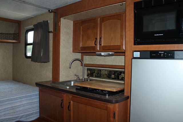 This 2012 Tracer is light weight and easy to tow. It's Options include....1 Slide-out, 1 Roof A/C, Gas/Elec/12vlt Single Door Refrigerator, Main Awning, CD Radio, Outside Shower and Speakers, TV, DVD Player, Microwave and 2 Burner Range. Great for last minute trips.