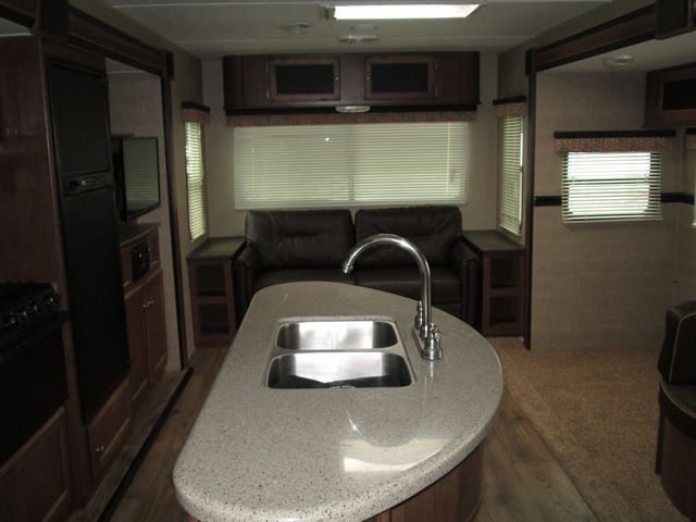 This 2014 Aspen Trail has island style kitchen that adds to it's comforts. Options include....Electric Tongue Jack, 2 Slide-outs, 1 Roof A/C, Double Door Refrigerator, Main Awning, CD Radio, Outside Speakers, TV, DVD Player, Microwave and 3 Burner Range. Get out into the great outdoors and while spending quailty time with family and friends.