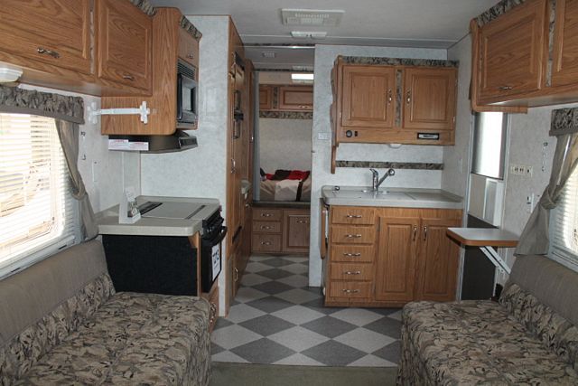 This 2005 Weekend Warrior Toyhauler has an Electric Tongue Jack for ease in hitching and unhitching, Features include....Onan Gas Generator, 1 Roof A/C, Double Door Refrigerator, Main Awning, CD Radio, Outside Speakers, DVD Player, Outside Shower, Microwave, 3 Burner Range and Oven. Get out into the great outdoors. GO CAMPing!