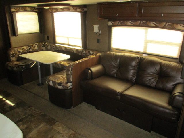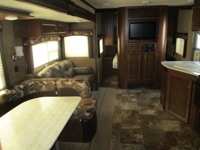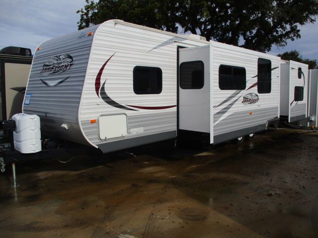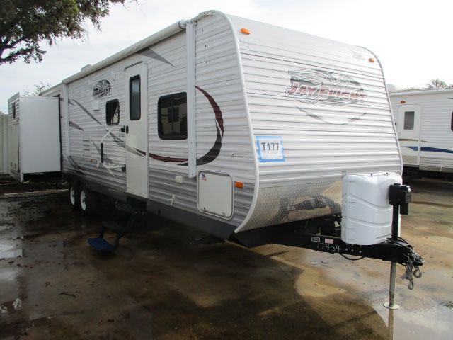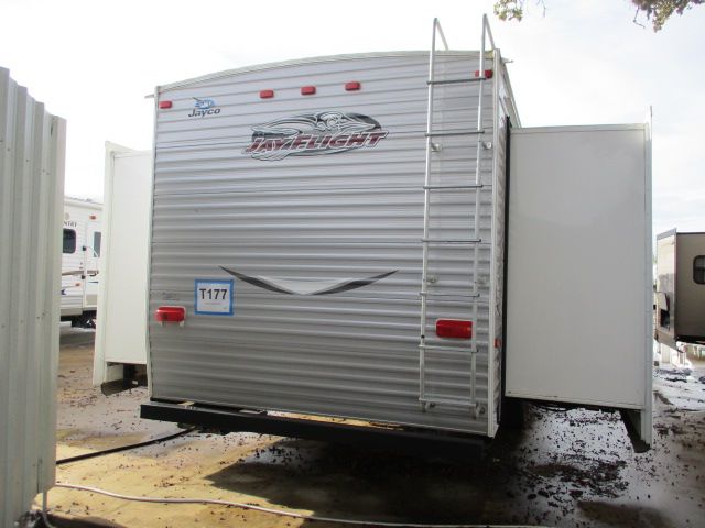 This 2014 Jayco Jay Flight has an Electric Tongue Jack, 3 Slide-outs, Double Door Refrigerator, Main Awning, CD Radio, Outside Speakers, TV, DVD Player, Outdoor Kitchen, Outside Shower, Microwave, 3 Burner Range, Oven and ideal family floorplan. Build family memories. Let's go RVing!