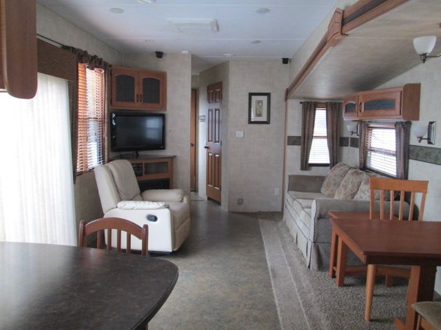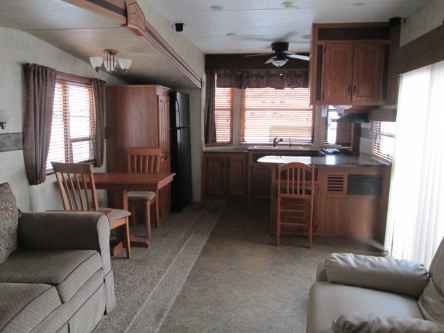 Very Spacious Park Model Trailer. This 2011 Retreat is perfect to park at the lake, Down at the beach or any place you would like. Comforts include....3 Slide-outs, 1 Ducted Air Conditioner, Electric Residential Double Door Refrigerator, Fireplace, 2 Piece Washer/Dryer, CD Radio, TV, DVD Player, Outside Shower, Microwave, 3 Burner Range and Oven. Enjoy all the comforts of home with this Retreat.