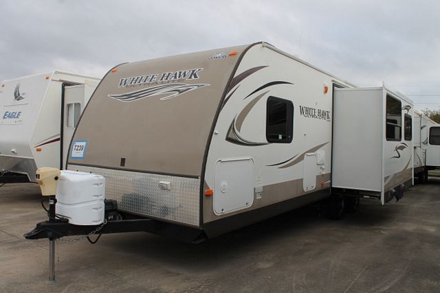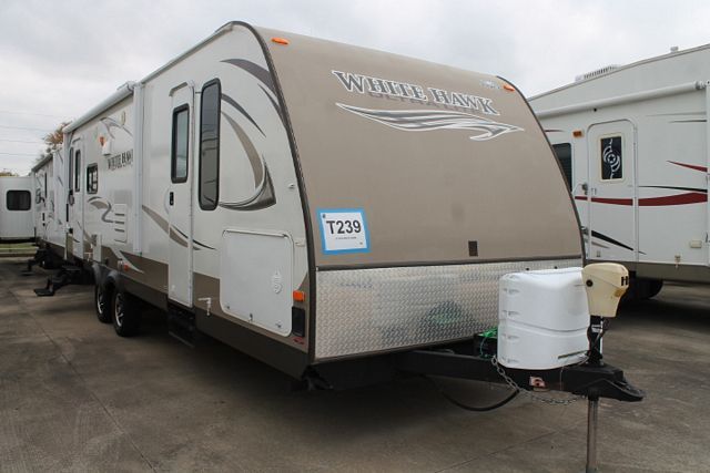This 2013 White Hawk has a nice floor plan for the small family or couple on the go. Options include....Electric Tongue Jack, 1 Slide-out, 1 Ducted Air Conditioner, Double Door Refrigerator, Electric Main Awning, Outside Shower and Speakers, TV, Microwave, 3 Burner Range and Oven. Enjoy freetime at your favorite spot.