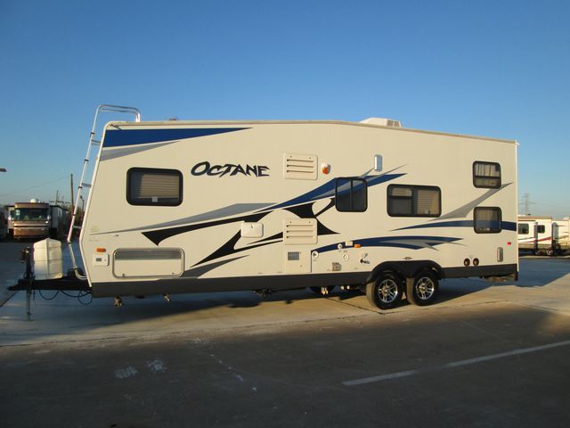 This 2012 Octane Has An Electric Tongue Jack, Options Include... 4000W Onan Gas Generator, 1 Ducted Air Conditioner, Double Door Gas/110V Norcold Refrigerator, Main Awning, Cassette Radio, Outside Speakers, TV, DVD Player, Outside Shower, Microwave, 3 Burner Range, And Oven. Load Up The Family And Head Out On A Weekend Adventure With This Octane In Tow. It's Sure To Make Any Trip A Memorable One!!