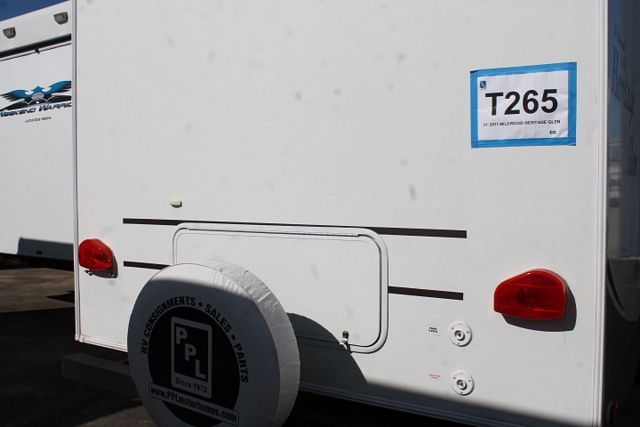 This 2011 Wildwood Heritage Glen has sleeping for up to 6. Features include....2 Slide-outs, 1 Non-Ducted And 1 Ducted Air Conditioner, Double Door Gas/110V Dometic Refrigerator, Automatic Main Awning, CD Radio, Outside Speakers, 2 TVs, DVD Player, Microwave, 3 Burner Range and Oven. Nice layout with Front Living space and Rear Bedroom.