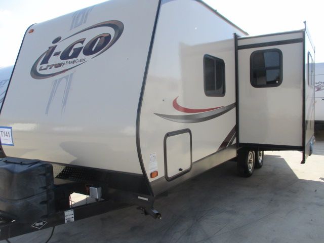 This 2013 I-Go has a 1 Slide-out, Double Door Gas/110V Dometic Refrigerator, Automatic Main Awning, Outside Speakers, TV, Outside Shower, Microwave, 3 Burner Range, Oven, BBQ with Quick Connect, Tinted Glass, Compact and Ready to GO!