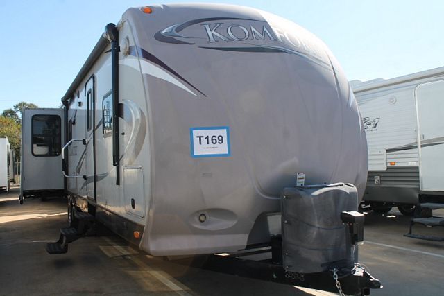 This 2012 Komfort By Thor has an Electric Tongue Jack, Comforts include....3 Slide-outs, 1 Ducted Air Conditioner, Double Door Gas/110V Refrigerator, Main Awning, CD Radio, Outside Speakers, 2 TVs, DVD Player, Outside Shower, Microwave, 3 Burner Range and Oven. Enjoy freetime in this Komfort.