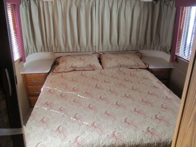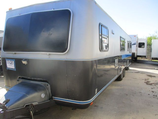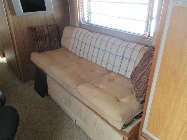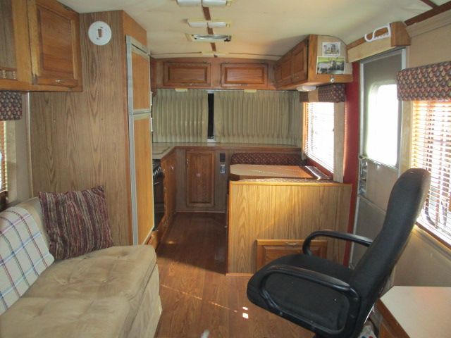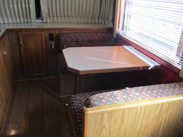 This 1989 Airstream has a 1 Non-Ducted Air Conditioner, Double Door Gas/110V Dometic Refrigerator, Main Awning, Cassette Radio, TV, DVD Player, Microwave, 4 Burner Range, Oven, 2 Door Entry, Front Kitchen With Bench Seating