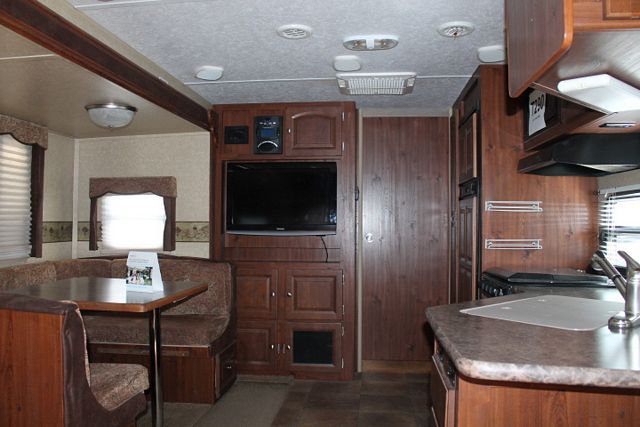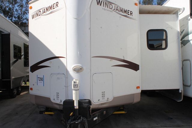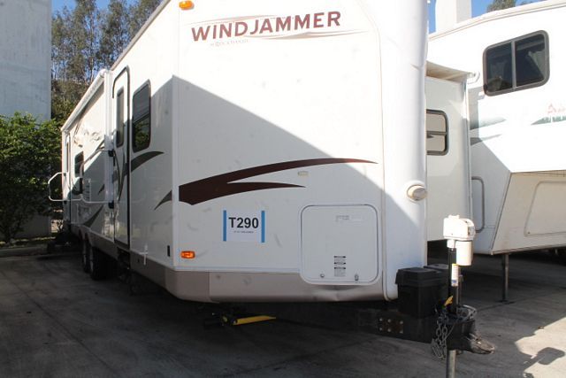 This 2011 Windjammer has an Electric Tongue Jack for ease in hitching and unhitching It's options include....2 Slide-outs, 1 Ducted Air Conditioner, Double Door Gas/110V Refrigerator, Main Awning And Slide Awning, Outside Speakers, TV, Microwave, 3 Burner Range and Oven. This Windjammer has the very popular V-shaped floor plan.