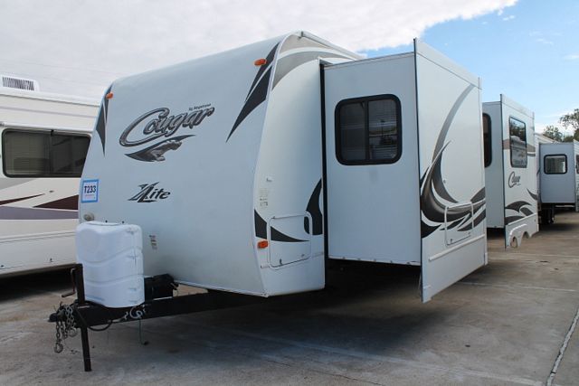 This 2011 Cougar X-Lite has a rear bathroom with second exterior door for easy access. Features include....2 Slide-outs, 1 Ducted Air Conditioner, Double Door Gas/110V Refrigerator, Main Awning, CD Radio, Outside Speakers, Grill and Sink, TV, DVD Player, Microwave, 3 Burner Range and Oven. Get out into the great outdoors and see what wonderful adventures are awaiting you. Go CAMPing!