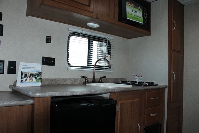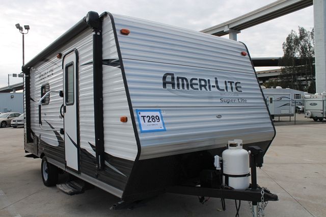 This Nearly New with One Owner. 2017 Ameri-Lite has sleeping for up to 6 and is great for last minute trips. Options include....Electric Tongue Jack, 1 Non-Ducted Air Conditioner, Single Door Gas/110V Refrigerator, Electric Main Awning, Microwave and 2 Burner Range. Light weight 1/2 ton towable.