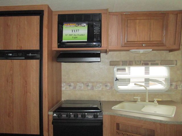 This 2007 Jay Feather Light is perfect for last minute trips. Options include.... Electric Tongue Jack, 1 Slide-out, 1 Ducted Air Conditioner, Double Door Gas/110V Refrigerator, Main Awning, TV, DVD Player, Outside Shower, Microwave, 3 Burner Range and Oven. Make CAMPing a part of your life.