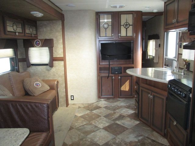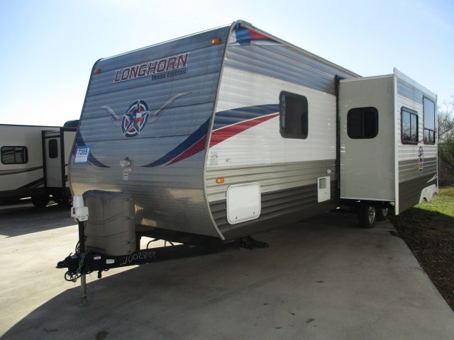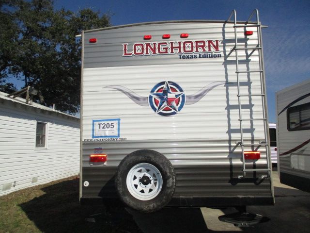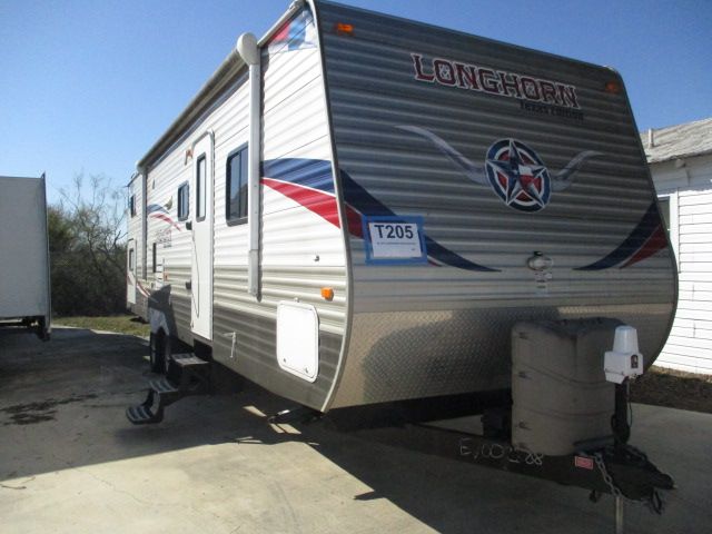 This 2014 Longhorn has an Electric Tongue Jack, 1 Slide-out, 1 Non-Ducted And 1 Ducted Air Conditioner, Double Door Gas/110V Norcold Refrigerator, Automatic Main Awning, CD Radio, Outside Speakers, TV, DVD Player, Outside Shower, Microwave, 3 Burner Range, Oven. Great floorplan for families who love to go on those long vacations. Let's go RVing!