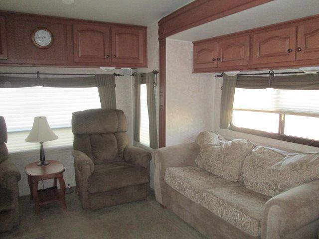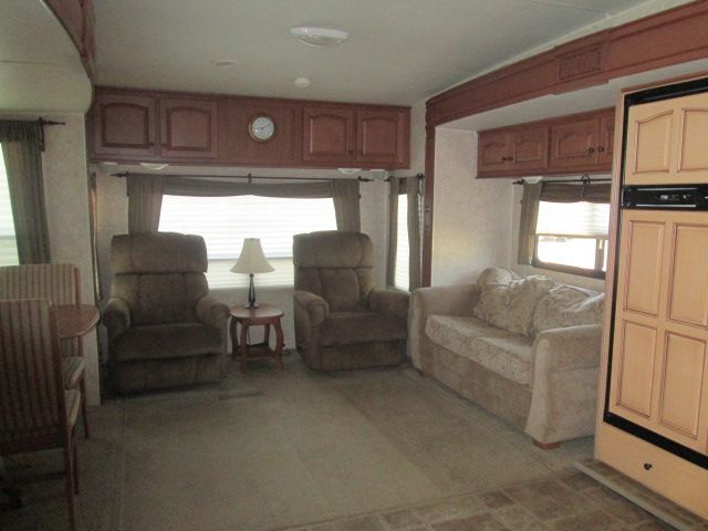 This 2010 Journeyer has open floor plan and could be your next home. Options include....Electric Tongue Jack, 3 Slide-outs, 2 Ducted Air Conditioners, Double Door Gas/110V Refrigerator, Automatic Main Awning, 1 Piece Washer/Dryer, CD Radio, 2 TVs, DVD Player, Outside Shower, Microwave, 3 Burner Range and Oven. Spacious living and kitchen area with plenty of storage.