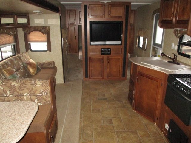 This 2012 Catalina has an Electric Tongue Jack, 1 Slide-out, 1 Ducted Air Conditioner, Double Door Gas/110V Norcold Refrigerator, Automatic Main Awning, CD Radio, Outside Speakers, TV, Outdoor Kitchen with sink, Refrigerator, Grill, Countertop, Outside Shower, Microwave, 3 Burner Range, Oven, Tinted Glass. Ready for that Family Outting.
