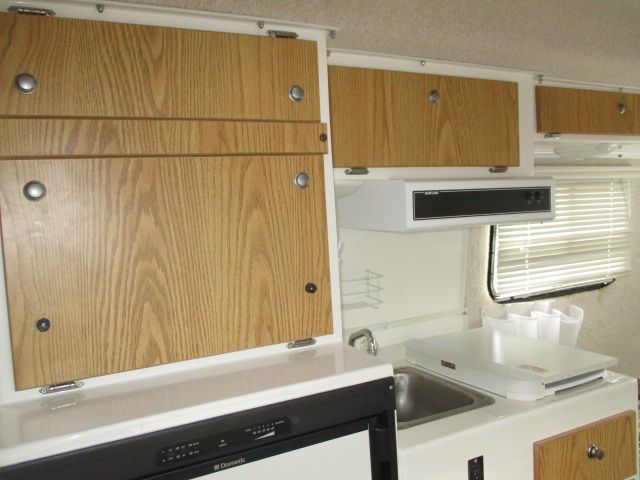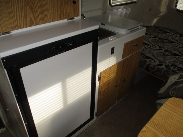 This 2011 Casita has an Electric Tongue Jack, 1 Non-Ducted Air Conditioner, Single Door Gas/12V Dometic Refrigerator, Microwave