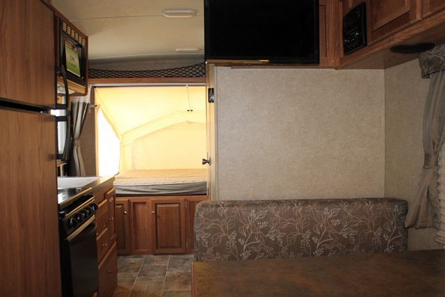 This 2015 Rockwood Roo Expandable is a light weight, 1/2 ton Towable thats easy to pull with light duty truck or suv. Features include....1 Non-Ducted Air Conditioner, Double Door Gas/110V Dometic Refrigerator, Automatic Main Awning, CD Radio, Outside Shower and Speakers, TV, Microwave, 3 Burner Range and Oven. Enjoy spending quailty time with family and friends in the great outdoors.