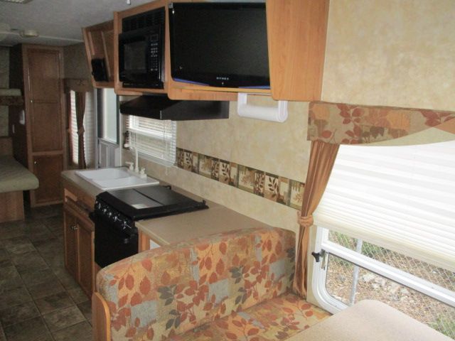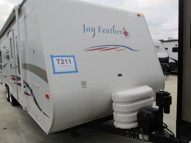 This 2007 Jay Feather Exp has an Electric Tongue Jack, 1 Slide-out, 1 Non-Ducted Air Conditioner, Double Door Gas/110V Norcold Refrigerator, Main Awning, CD Radio, TV, DVD Player, Outside Shower, Microwave, 3 Burner Range, Oven and upgraded 15" tires. Let's go RVing!