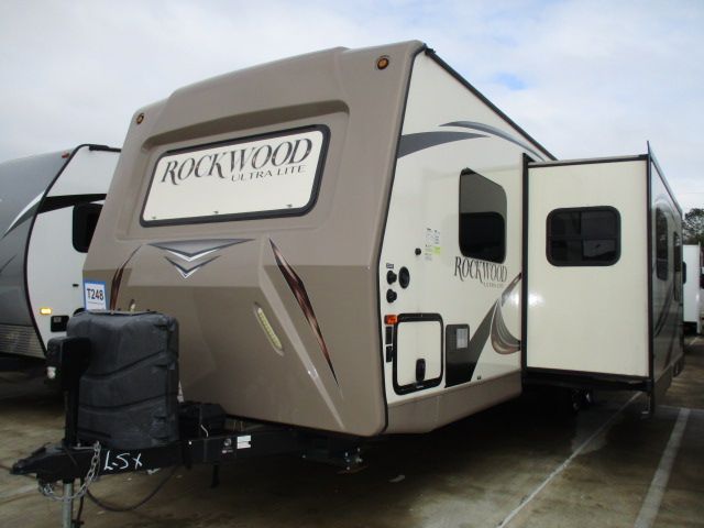 This Nearly New 2016 Rockwood Ultra Lite is loaded with great feeatures that include ....Electric Tongue Jack, 2 Slide-outs, 1 Ducted Air Conditioner, Double Door Gas/110V Refrigerator, Main Awning, CD Radio, Outside Shower and Speakers, TV, DVD Player, Microwave, 3 Burner Range, Oven and Outdoor Kitchen. Nice Travel trailer for family travels or entertaining guest. Stop by and take a Look!